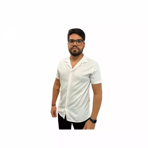 CAMISA LEHUA PURO LINHO MANGA CURTA AZUL